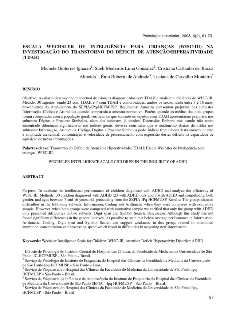 Wisc iv escala wechsler de inteligência para crianças. O teste individual mais usado é o wais iii. O teste de qi. A wisc iii é a terceira edição da escala de inteligência para crianças de david wechsler completamente revista e atualizadaembora mantenha a mesma estrutura que a wisc e que a wisc r a wisc iii apresenta várias novidades designadamente ao nível dos ma. Discutir o constructo de inteligência que embasou a construção do instrumento. Compreender a estrutura da wisc iv e sua ligação com o mais recente modelo teórico de conceituação da inteligência. A escala de inteligência wechsler para crianças wisc iii foi desenvolvida levando em consideração a concepção da inteligência como uma entidade agregada e global ou seja capacidade do indivíduo em raciocinar lidar e operar com propósito racionalmente e efetivamente com o seu meio ambiente. A escala wechsler de inteligência para crianças 4a edição wisc iv é um instrumento clínico de aplicação individual que tem como objetivo avaliar a capacidade intelectual das crianças e o processo de resolução de problemas. A escala wechsler de inteligência para crianças 4a edição wisc iv é um instrumento clínico de aplicação individual que tem como objetivo avaliar a capacidade intelectual das crianças e o processo de resolução de problemas. Individual mais administrado em pessoas de 6 a 16 anos é o wisc iii escala de inteligência wechler para crianças originalmente desenvolvido em 1949 revisado em 1974 wisc r 1991 wisc iii e 2003 wisc iv. Wisc iv escala wechsler de inteligência para crianças objetivo capacitar profissionais e estudantes da psicologia na aplicação correção e interpretaçao do wisc iv com foco neuropsicológico na interpretação de dos resultadoscapacitar psicólogos e estudantes de psicologia avaliar a capacidade intelectual das crianças e o processo de resolução de problemas com o instrumento. 1 manual técnico 1 manual de instruções para aplicação e avaliação 10 protocolos de registro 10 protocolos de resposta 1 10 protocolos de resposta 2 1 livro de estímulos cubos 2 crivos código 1 crivo procurar símbolos 1 crivo de cancelamento.