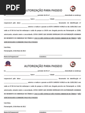 Modelo De Autorização De Viagem Para Criança