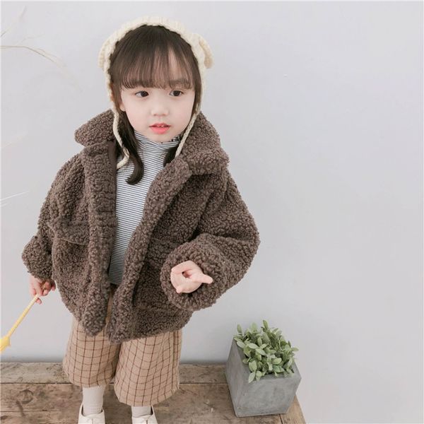 Compre Desgaste Casaco Bebê Versão Japonesa Das Crianças Das Meninas Crianças Simulação Cordeiro Cashmere Roupas De Inverno Quente Lapela Vestir