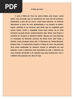 Resumo Do Livro Mina De Ouro De Maria José Dupré 7º Ano