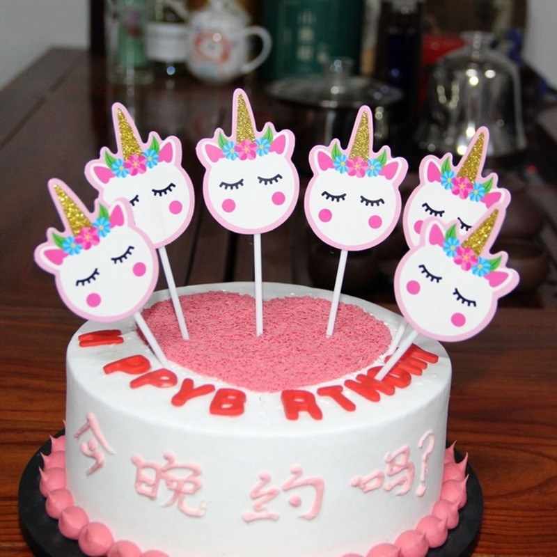 6pcs Unicórnio Fofo Cupcake Toppers Cartões De Inserção De
